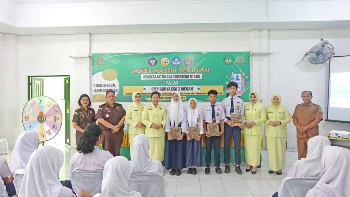 Ketua Ikatan Adhyaksa Dharmakarini (IAD) Wilayah Sumatera Utara Ny.Tiurmaida Harli Siregar menyambangi Sekolah Menengah Pertama (SMP) Swasta Adhyaksa 2 Medan yang terletak di Jln HM Said No.23 Medan Timur kota Medan, Senin (6/10/2025).