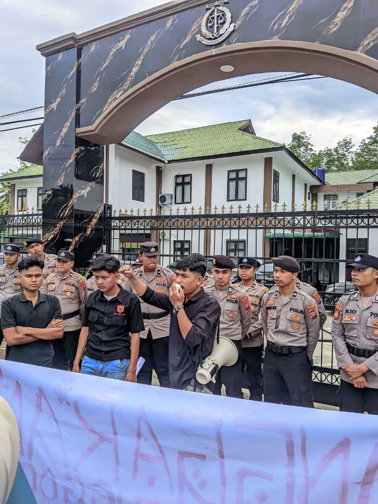 Aksi ini digelar di dua titik strategis, yakni Kantor Bupati Mandailing Natal dan Kejaksaan Negeri Mandailing Natal.