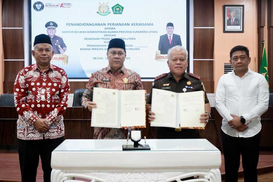 Kantor Wilayah Kementerian Agama Provinsi Sumatera Utara dan Kejaksaan Tinggi Provinsi Sumatera Utara melakukan penandatanganan Perjanjian Kerja Sama terkait Penanganan Masalah Hukum Bidang Perdata dan Tata Usaha Negara.
