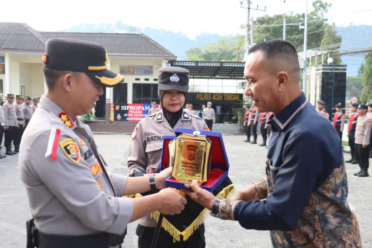 Kapolres Aceh Tengah AKBP Muhammad Taufiq, S.I.K., M.H., memimpin apel pemberian piagam penghargaan kepada personel Polres Aceh Tengah Tahun Anggaran 2026 sekaligus pemberian cendera mata kepada personel Purna Bakti, Selasa (20/1/2026) pagi.