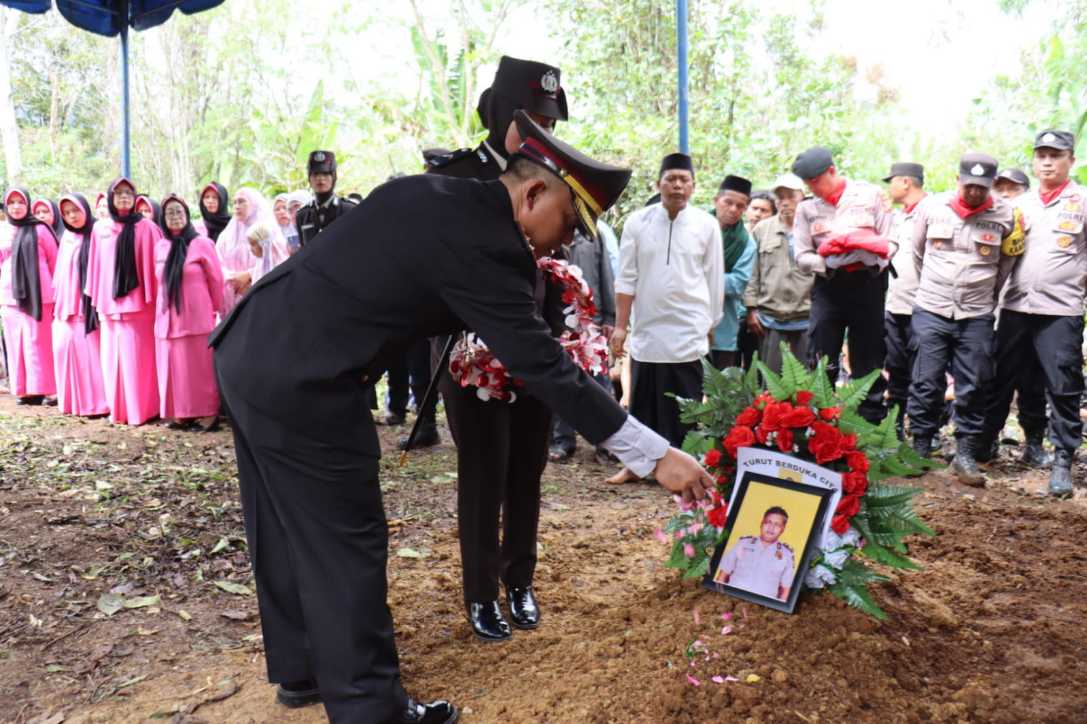 Kapolres juga menyampaikan doa dan penguatan kepada keluarga yang ditinggalkan agar diberikan ketabahan dan kekuatan iman.