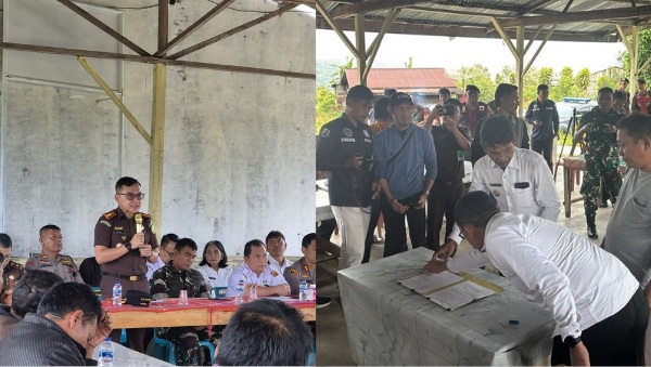 Pada mediasi itu Kajari Dairi menyaksikan langsung proses penandatanganan perjanjian perdamaian antar warga yang berkonflik.