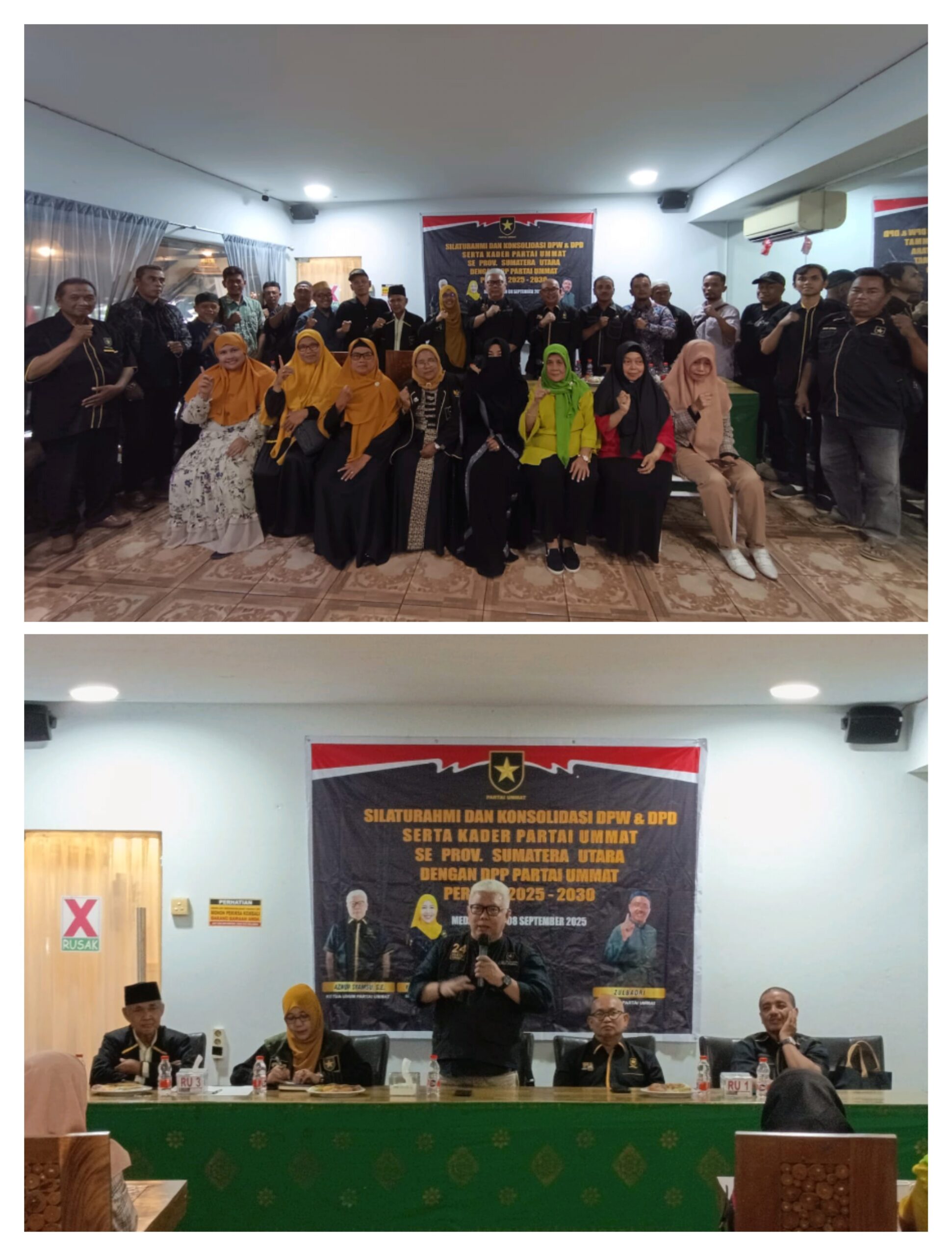 Ketua Umum Partai Ummat Aznur Syamsu, SE mengajak seluruh kader Partai Ummaat di Sumatera Utara kembali menyalakan api perjuangan yang sempat “meredup” pasca Pemilu 2024 dan munculnya berbagai dinamika dalam tubuh pantai dengan tagline “lawan Kezhaliman, Tegakkan Keadilan”. Ajakan tersebut diungkapkan Aznur Syamsu di hadapan para kader Partai Ummat dari berbagai daerah di Sumatera Utara pada kegiatan Silaturrahmi dan Konsolidasi DPW & DPD serta Kader Partai Ummat se-Provinsi Sumatera Utara DPP Partai Ummat Ummat Periode 2025 -2030, Senin, (8/9/2025) di Desa-desa Resto Jalan Setia Budi Medan.