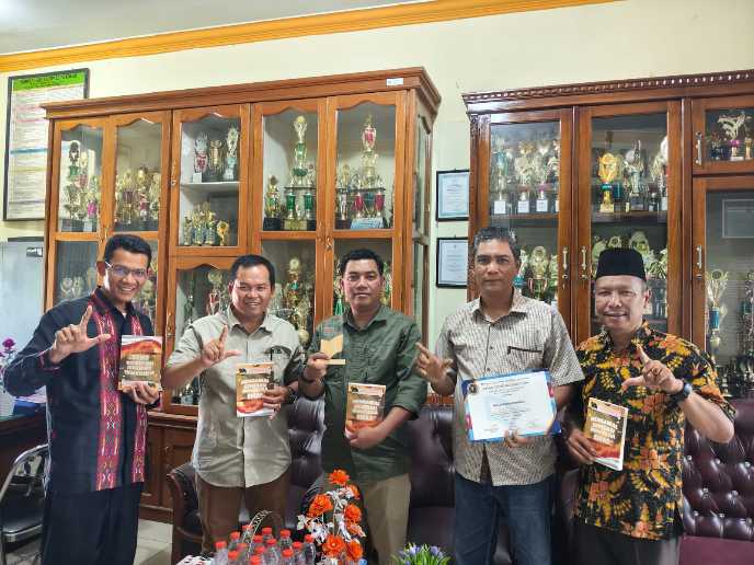 Dalam kesempatan ini, kepala madrasah menyerahkan secara simbolis 50 eksemplar buku kepada pengurus Perpustakaan Bukhari Muslim MAN 2 Padangsidimpuan, Azhar Nasution, S.Sy., M.Pd. dan Rifanul Ilmi Ali Rambe, S.Pd. Buku ini akan menjadi koleksi perpustakaan madrasah sebagai sarana pendukung pembelajaran siswa.