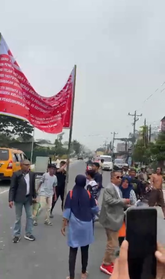 Mereka mendirikan spanduk diatas lahan yang mereka miliki (alas hak Grant 50),  dan memblokir jalan sebagai bentuk aksi protesnya.