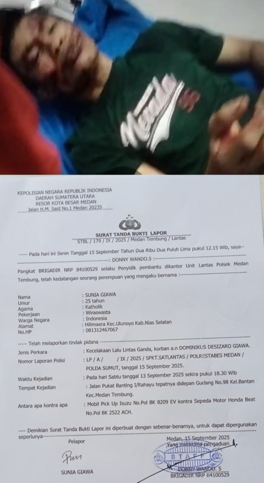 Atas kejadian tersebut, pada Senin (15/9/2025), kakak kandung korban, Sunia Giawa, resmi melaporkan kasus tersebut ke Polsek Medan Tembung dengan Nomor Laporan Polisi: STBL/179 / IX / 2025/ Satlantas/ Medan Tembung / tanggal 15 September 2025.