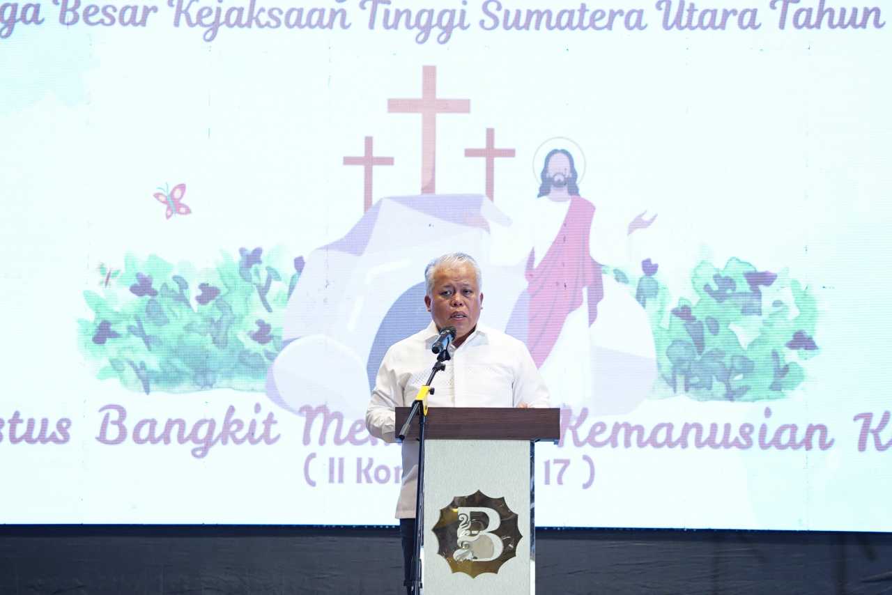 “Adapun makna perayaan paskah ini, kita berharap seluruh jaksa serta pegawai Kejaksaan Tinggi Sumatera Utara dapat membangkitkan semangat dan memberikan kontribusi terbaik dengan semangat pembaruan diri yang lebih berintegritas dan dapat terus menanamkan nilai kemanusiaan dalam pelaksanaan tugas sehari hari”, tegas Kajatisu.