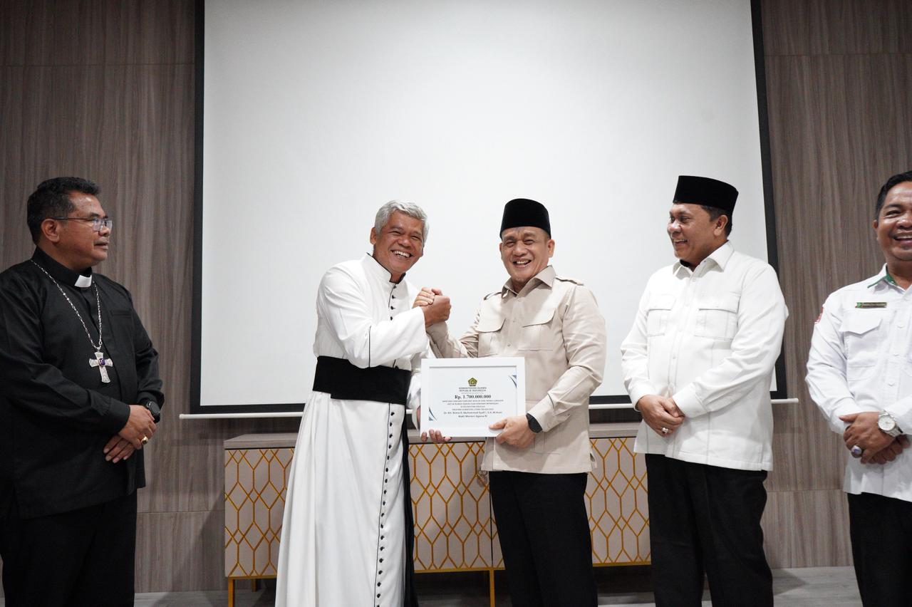Bantuan tersebut diberikan kepada Keuskupan Agung Medan Rp 200 juta, Keuskupan Agung Sibolga Rp 1,7 Miliar dan Pembimas Katolik Kanwil Kemenag Aceh Rp 100 juta yang diserahkan di Catholic Center Christosophia Medan, Senin (29/12/2025).