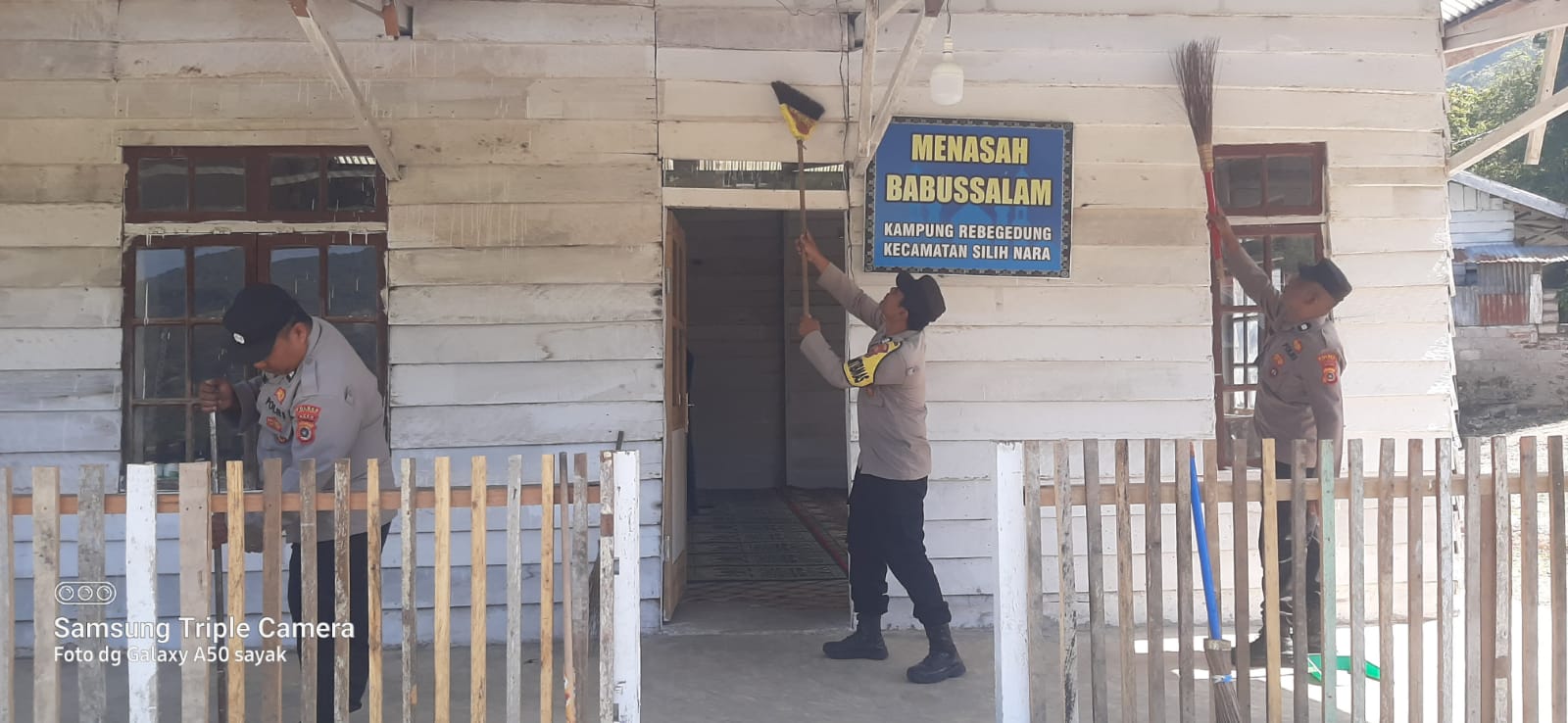 Polres Aceh Tengah melalui Polsek Silih Nara, melaksanakan kegiatan kurve atau kerja bakti dalam rangka mendukung Gerakan Nasional Indonesia ASRI (Aman, Sehat, Resik, Indah) di Menasah Babussalam, Kampung Rebegedung, Kecamatan Silih Nara, Kabupaten Aceh Tengah, Minggu (8/3/2026) pagi.