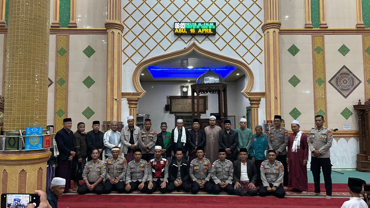 Turut hadir dalam kegiatan tersebut antara lain Kabag Ops AKP Imil Yusni, Kasat Binmas AKBP Hasman Hidayah, Kasi Humas Ipda Eriadi, KBO Lantas Ipda Arif Fadillah, KBO Binmas Ipda Zulkifli Irwansyah, serta tokoh agama dan pengurus Masjid Al Falah.