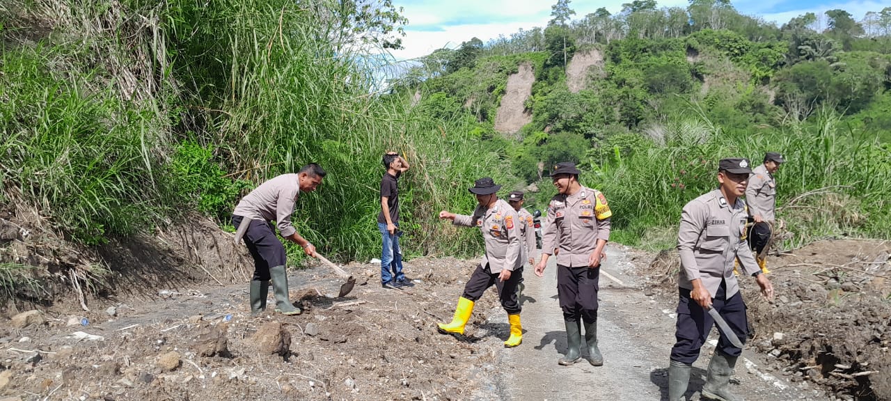 Polsek Kute Panang Gotong Royong Pulihkan Jalur Penghubung Kabupaten Pascabencana