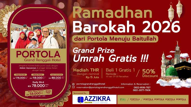 Dengan perpaduan nuansa religi, wisata alam, dan konsep kekinian, Ramadhan Barokah 2026 di Portola Grand Renggali Hotel menjadi pilihan tepat untuk menikmati indahnya kebersamaan sekaligus meraih peluang ibadah ke Tanah Suci.(rel)