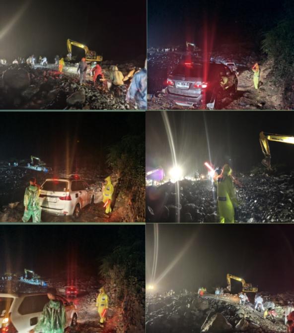 Kegiatan yang dimulai sekitar pukul 23.00 WIB tersebut dilakukan sebagai respons cepat atas meluapnya air yang menggenangi badan jalan dan mengganggu akses kendaraan. Dalam kondisi hujan dan medan yang cukup sulit, petugas tetap siaga mengatur kendaraan yang melintas secara bergantian demi menghindari kemacetan dan potensi kecelakaan.