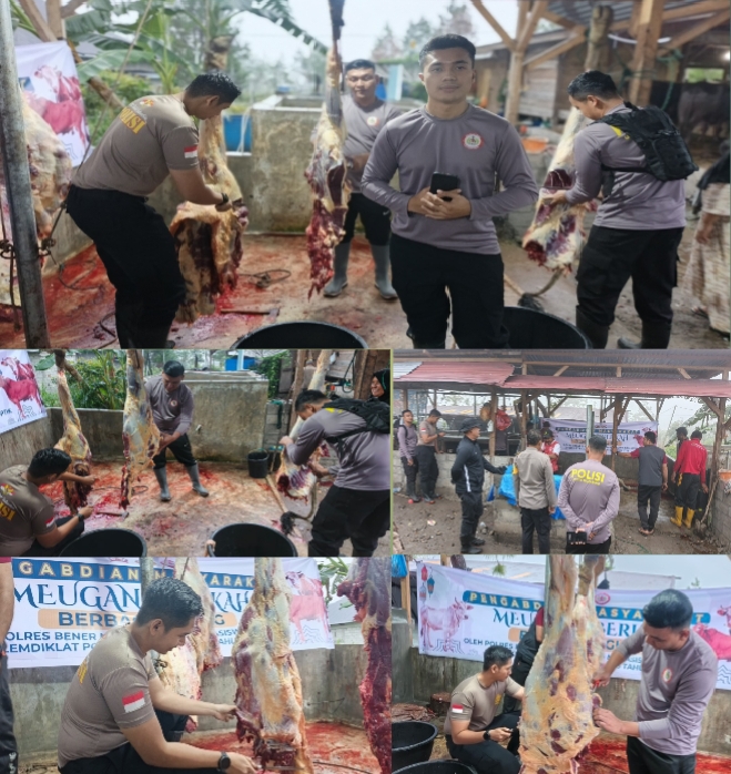 17 Februari 2026. Semangat berbagi dan melestarikan kearifan lokal terpancar nyata di Kabupaten Bener Meriah menjelang bulan suci Ramadan. Sejumlah mahasiswa Sekolah Tinggi Ilmu Kepolisian (STIK-PTIK) Lemdiklat Polri Angkatan 83 menggelar aksi sosial dengan menyembelih 4 ekor sapi dalam rangka merayakan tradisi Uroe Meugang, Selasa (Sore).