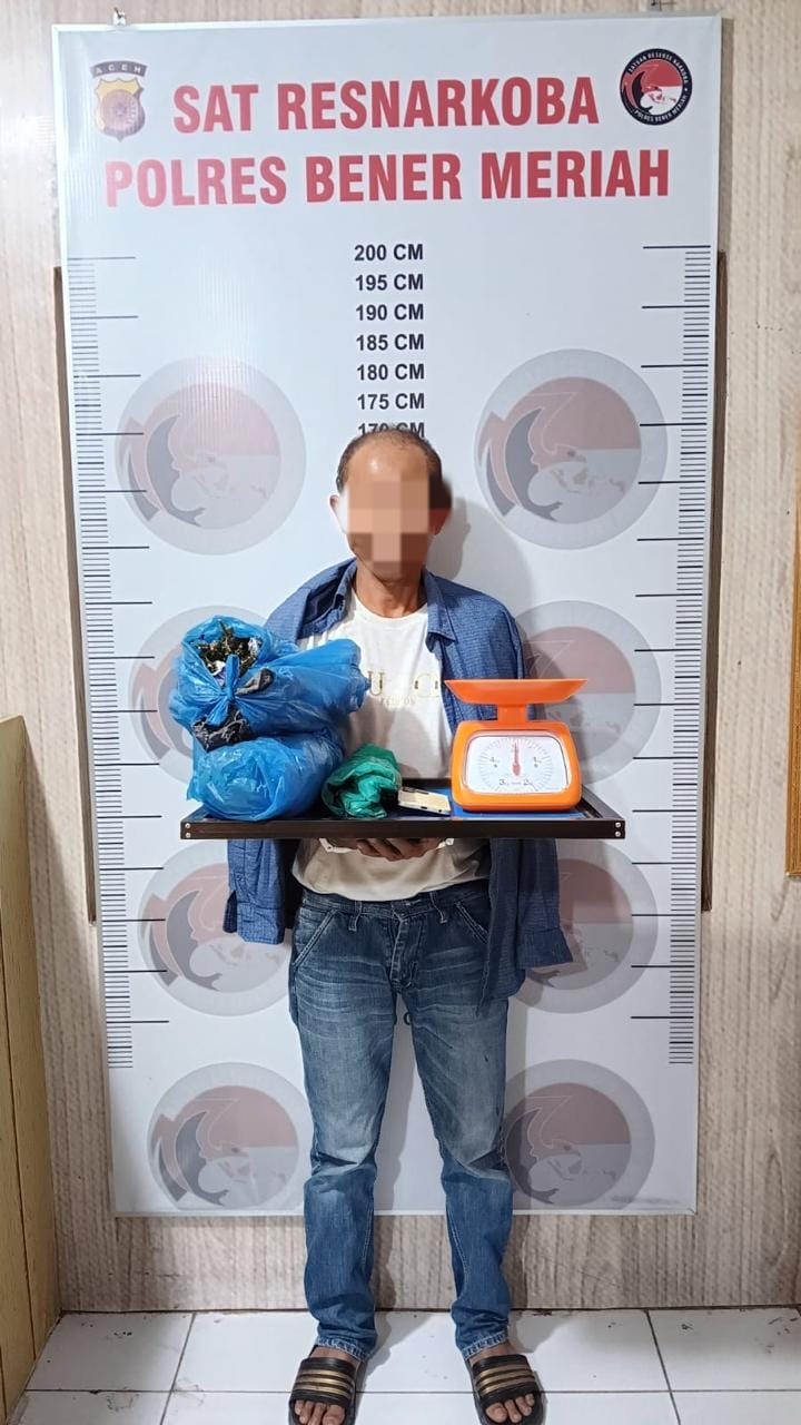 Selasa, 18 November 2025, sekitar pukul 17.00 WIB, petugas berhasil mengamankan seorang pria yang diduga sebagai pengedar ganja beserta barang bukti seberat 1,2 kilogram di Kampung Rime Raya, Kecamatan Pintu Rime Gayo.